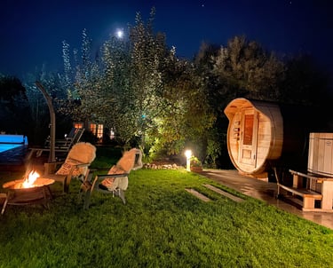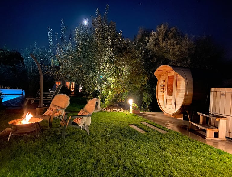 Settle into our sauna or our Nordic bath. At any hour, the experience is intense: during the day as a couple, at dusk, at night among friends — every moment is lived differently.