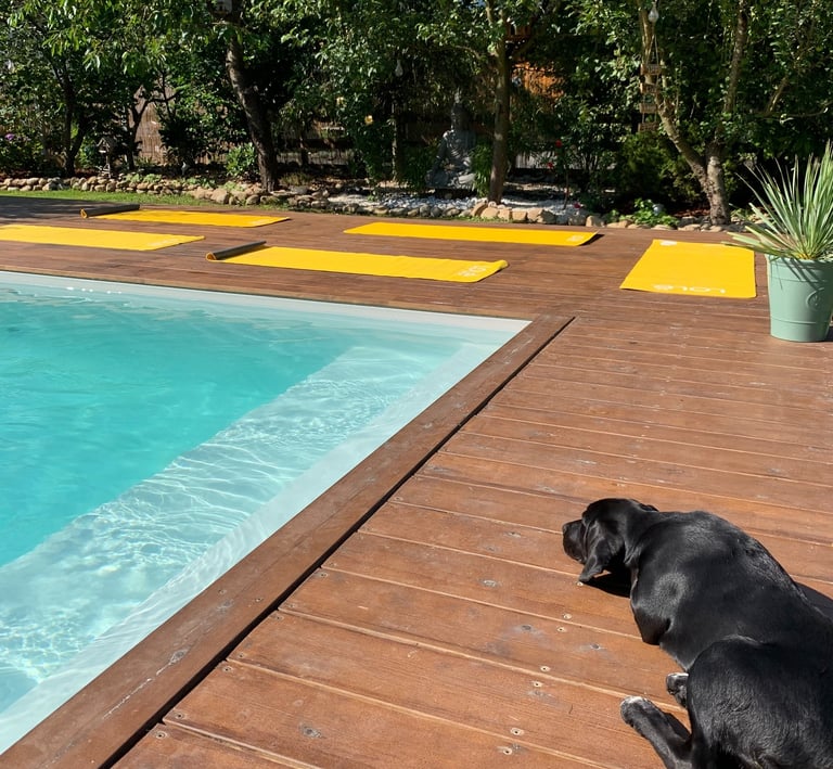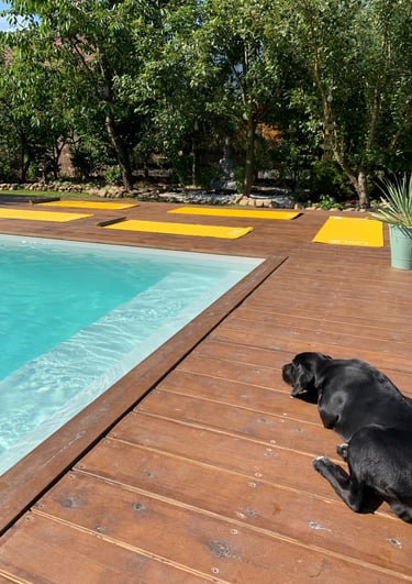 La journée commence à 10h par un cours de yoga matinal. Nous pratiquerons sur le deck, devant la piscine et face aux montagnes.