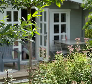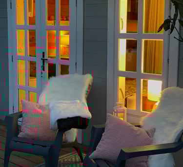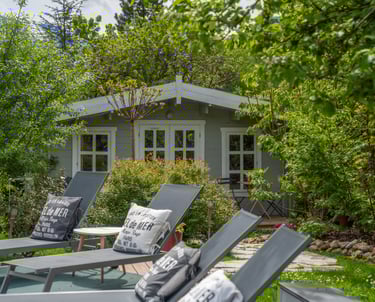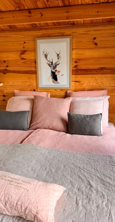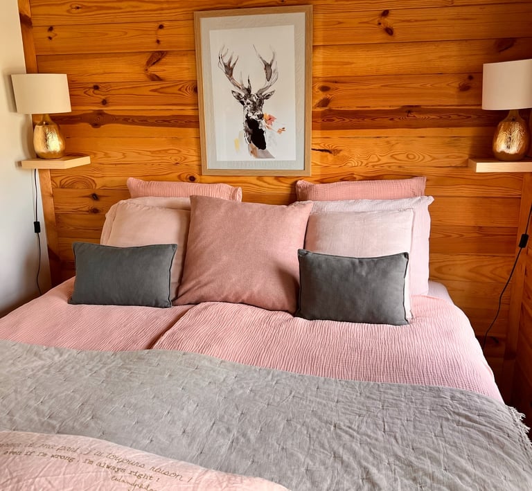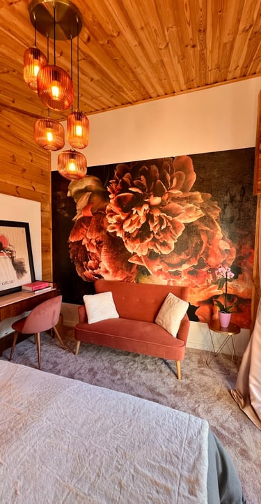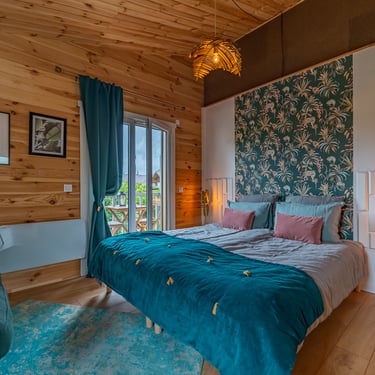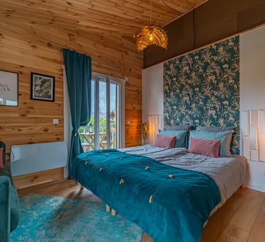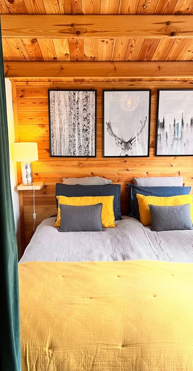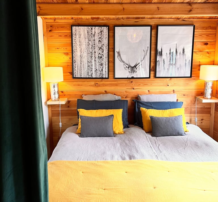 Nos deux lodges : Lofoten (dans des tons bleu & jaune moutarde) et Boréales (dans des tons rose pastel et gris) sont orientés soleil couchant, d’une superficie de 20m2 avec un accès direct à la piscine et au jardin. Leur décoration vous invite à l’apaisement et au bien-être.